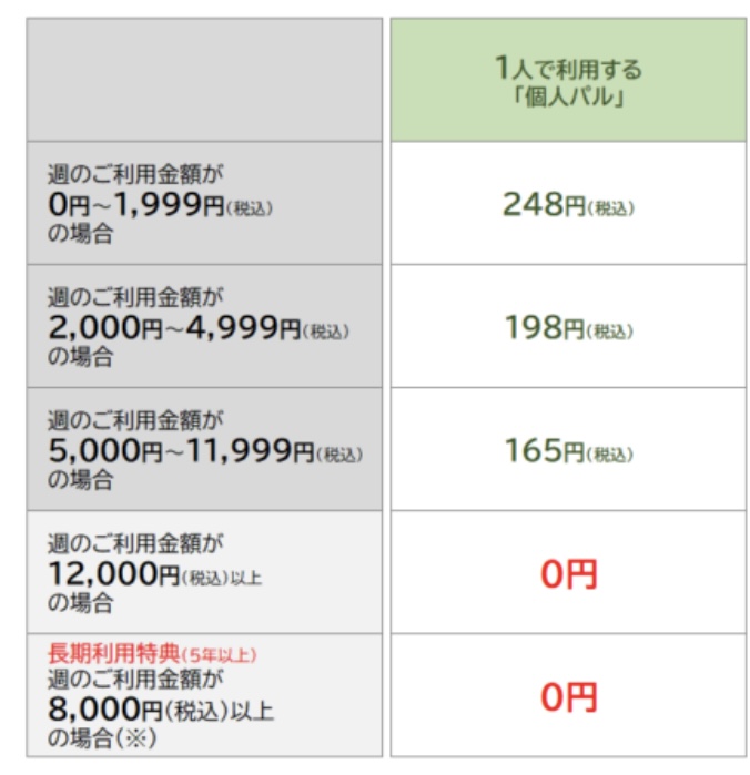 パルシステム利用料は下記の通り、毎週かかってきます。