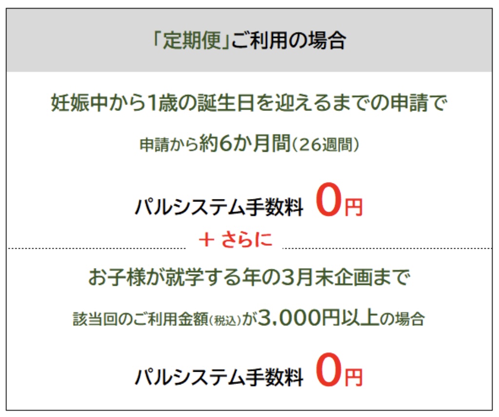定期便を利用する場合、妊娠中〜未就学児がいるご家庭は特典を利用することができます。