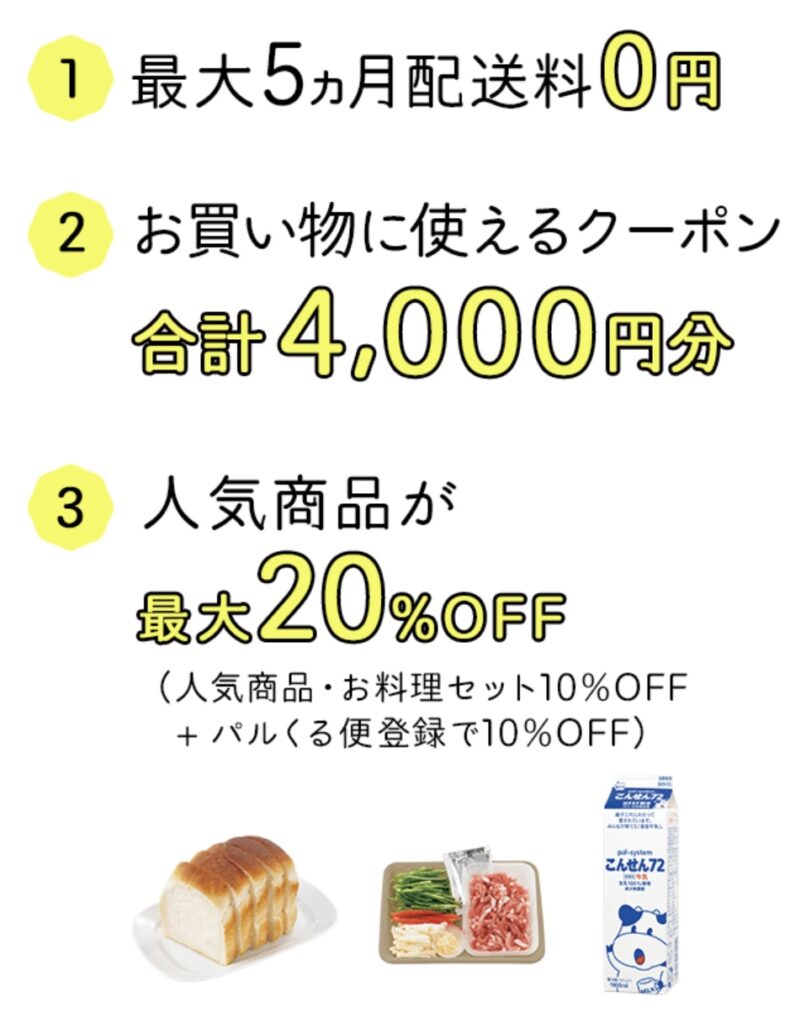 お試し宅配を利用した後に、入会特典を利用することが可能です!